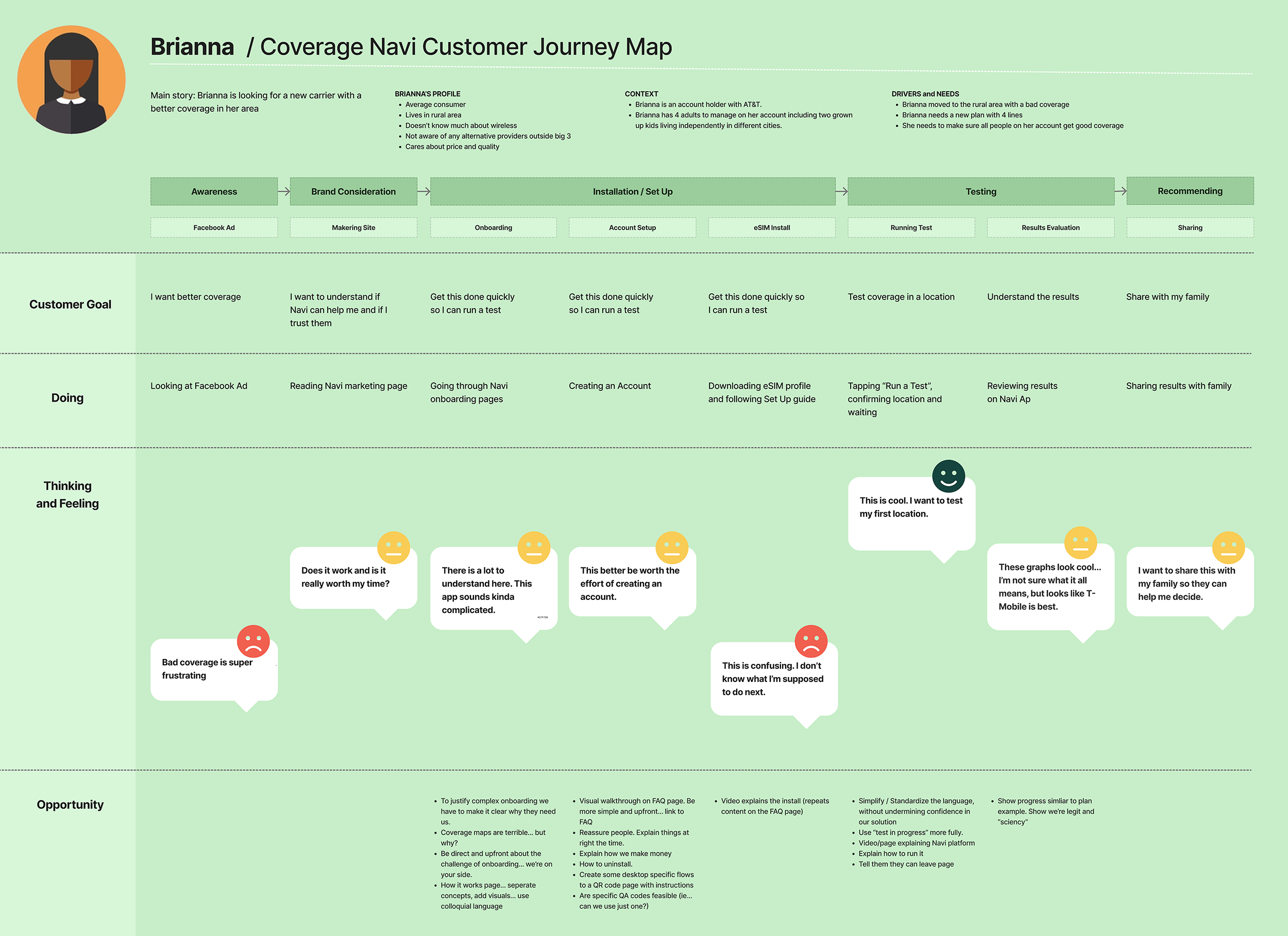 Navi utilizes cutting edge eSIM technology along with data science to build a first of its kind tool to help consumers test coverage of the three major cellular networks before switching carriers.
