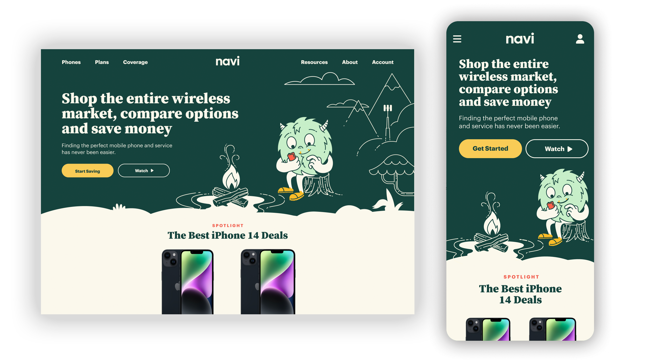Problem: Design a homepage that feels trustworthy and approachable. In an industry that often feels cold, Navi aimed to present itself as the friendly alternative to tech blogs and searching deals across multiple carrier and OEM websites.